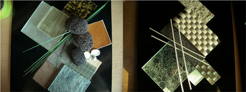 | Colourboards for Rong Hui Spa, featuring proposed tiles, stone and mosaics to be used in the interior details |