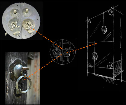 Illustration of Traditional Chinese design door handles to be utilized as door hardware throughout the project |